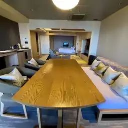 Villa Rakuen Asahi no Niwa/Type O Ichibanboshi opened in 2022 as a part of Villa Rakuen, where all rooms have a suite open-air bath. It is unique in that it is located in the Yumedaichi building, not the annex. This is a series that offers a blissful stay. Villa Rakuen is recommended for anniversaries and when you want to splurge.
