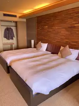 The terrace features an open-air bath made of cypress wood. Of course, the water is from a hot spring, and you can enjoy an ocean view. The spacious room includes a twin Western-style bedroom and a sofa where you can relax. This hot spring inn is recommended for those who want to be healed or for special occasions. Due to its popularity, early planning is advised.