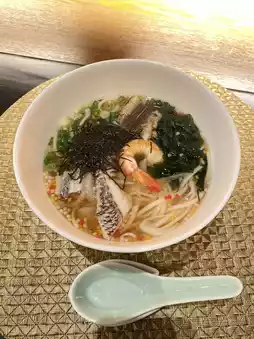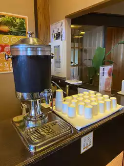 Currently, day trips are only available with lunch and hot springs (or just a meal). You can use the 'Spa Terrace Suigetsu', the 'Treatment Spa Komoe' (paid), and the 'Amamiya no Shizuku' at the annex Awaji Yumesenkei. Lunch is served at 'Bar Awaji'. Black soybean tea is provided at the post-bath area 'Oasis'. This time, I chose the Awaji Island Seafood Noodles for lunch. The noodles were made with seafood sourced from the local fishing port. Although the day trip-only option is no longer available, I enjoyed a luxurious time with the large public bath all to myself. This hotel is recommended for hot spring lovers, as you can enjoy the sauna, open-air bath, and the hotel's own red hot spring, Komoe Onsen.