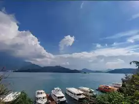 The surface of Sun Moon Lake is like a mirror, surrounded by green mountains. The lake water appears particularly clear under the sunlight. The white clouds on the lake and the mountain peaks interweave to form a picturesque scene that makes people linger. 🫶🏻