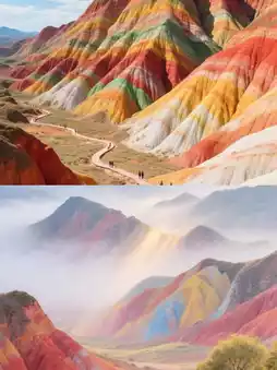 2. Alien Valley Interstellar Theme Park: Its rare, dreamlike, and mysterious Danxia landforms resemble an alien world. Marvel at the surreal red cliffs like "Louvre Phantom" and "Camel Greeting," showcasing nature's artistry. Dress in futuristic gear for cyberpunk-style photos.