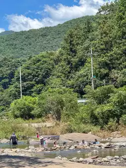 Located in Suncheon, this restaurant offers delicious food and a chance to enjoy the valley. It's easily accessible by a single bus ride from Suncheon Station, making it convenient even for those without a car. You can rent a pavilion or order food to secure a spot, allowing you to leave your belongings and have fun in the valley after enjoying a meal. The valley features shallow areas suitable for children as well as deeper spots perfect for adults, ensuring fun for all ages! There's also a shower facility available, which adds to the convenience. Be sure to visit and cool off during the hot summer!