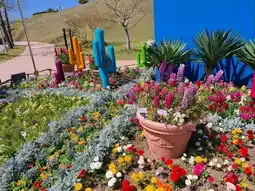 Lush fields and lush trees adorn the expansive bay, and vibrant flowers bloom across the entire area, creating a vibrant display of vibrant blooms.