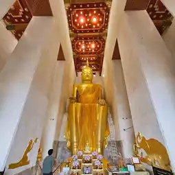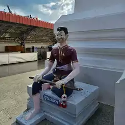 Wat Pa Lelai Worawihan, Suphan Buri Province ð is a major temple in the province and a must-visit tourist attraction for those visiting to pay respects and make merit. The main highlight is the enormous Luang Pho To (Luang Pho Pang Pa Lelai) statue inside the viharn. Murals depicting the story of Khun Chang Khun Phaen surround the viharn, and the Khun Chang compound, built in the style of a traditional wooden house, is also located. There's also a must-see market selling local products, a pavilion for Luang Pho Thir, and a monument to Khun Phaen and Nang Phim. Most visitors and tourists alike flock to pay their respects to Luang Pho To, a massive 23-meter-tall Buddha statue in the Pa Lelai pose. This stunning U Thong period sculpture is also a must-see. The temple also features beautifully illustrated murals depicting the story of Khun Chang Khun Phaen, accompanied by accompanying explanations.