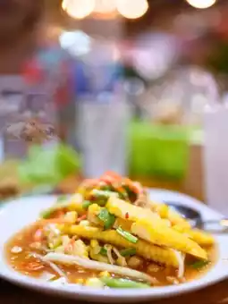🍣A must-try highlight is the corn som tam with a well-rounded taste, sour, sweet, salty, and spicy. In addition, the grilled pork neck is soft and juicy, grilled to perfection, not too dry. Dipping it with the delicious jaew sauce is the best. Other menus such as spicy pork bone soup or pork larb are equally delicious. The food prices are reasonable, not too expensive when compared to the quality and quantity received. If you visit Suphan Buri, Zaab Yok Krok is another Isan restaurant that you should not miss under any circumstances.
