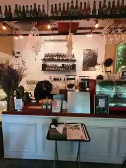 This cafe offers a wide selection of beverages, food, and bakery items.