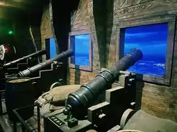 Together in the Same Boat: It's a bit dark when you first enter, with a segment simulating an attack on a boat with special effects, rocking back and forth, and then you come out to an ancient street scene.
