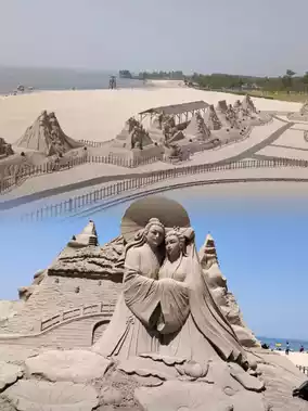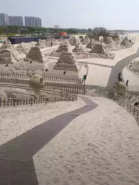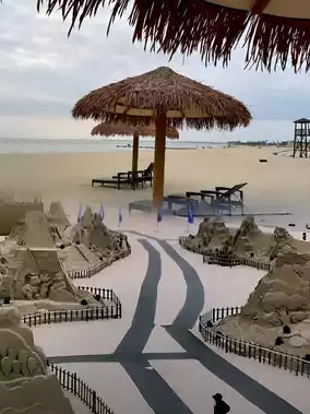 There's a super large beach, with sand sculpture art pieces, and a huge lake that sets off the sunset beautifully. If you didn't know, you'd really think I went on a beach vacation...