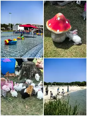 A paradise for kids, this lakeside spot features a white sand beach with a mini aquatic world and playful animal encounters.