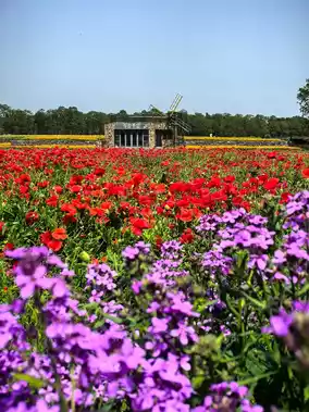 1⃣️ Near the park's east entrance lies the Nadian Flower Sea, which peaks in May and October. This mosaic of 62 flower fields grows diverse blooms. May transforms it into a world of poppies and orange jasmine, with undulating terraces creating a picturesque landscape. A 2-km pathway weaves through the fields, while the May Flower Sea Music Festival marks nature's most enchanting moment.