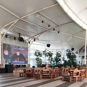 They have those cute photo spots, and on the rooftop they have this semi-outdoor chilling place with small F&B stalls, comfy chairs and a stage for events.