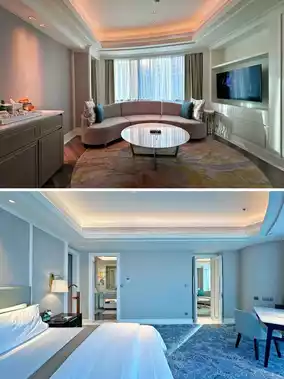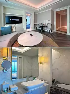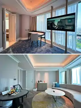 This time, I stayed in a Westin Executive Suite ~ spacious and comfortable, with The Westin’s signature elegant and simple color scheme, and the high-floor views and scenery were fantastic! The suite also includes access to the hotel’s 39th-floor Executive Lounge privileges: breakfast, all-day coffee and tea service, and evening happy hour ~ The Westin Surabaya’s happy hour food is quite good, almost like a small buffet dinner, and the selection of drinks and beverages is also very rich!