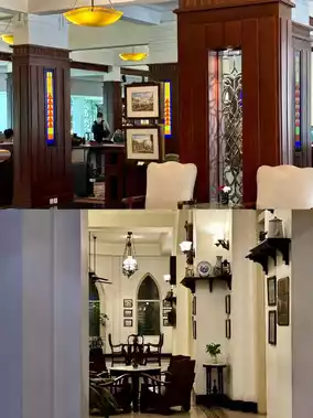 Many areas of the hotel still display historical photos and artifacts from the last century, like a small museum. The weathered look of the hotel feels like the marks time has left on this old relic.