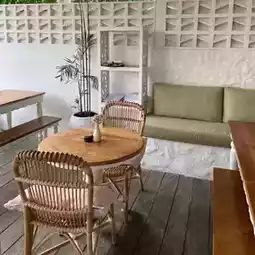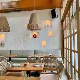 It looks cozy and the staff are very welcoming and friendly. But we were still somewhat disappointed after our visit. we ordered a small selection of cheeses for 230k and got three small pieces on a plate. Also ordered hummus which came in a small bowl for 120k but without bread.