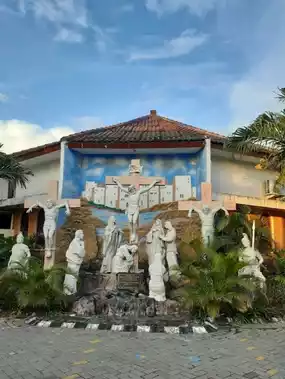 Gereja Katolik St. Marinus Yohanes is a Catholic church in Surabaya, Jawa Timur, Indonesia. located in the TNIAL residence building and part of the Diocese of Surabaya and North Quekepan Surabaya. Its architecture is a mix of Javanese and Catholic culture.  The atmosphere is quite a few chairs with kneeling seats. It is clean and cool, making you feel comfortable when you come to worship here. It is a good place for paying and contemplation. Highly recommended for anyone visiting Surabaya.