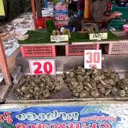 Thinking of fresh oysters, thinking of the community of Ban Pak Ka Dae, no matter how you come, you will get to eat fresh oysters. Your throat must come. Prepare your stomach and stomachache medicine. 5555 Just kidding. Prices start at 10 baht. Some shops don't only sell oysters, they also have other seafood, such as sea spiders, grilled squid. Anyone who comes to Surat Thani must stop by. It's only about 25 minutes from the city, and you can eat fresh oysters....