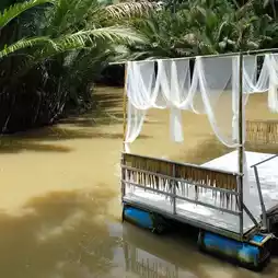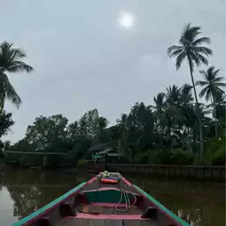 If anyone comes to Surat Thani and has time, or while waiting to board the boat to Koh Phangan, I would like to invite you to take a boat trip to see the Tapi River. We got on the boat at the City Pillar Shrine to take a boat to Khlong Roi Sai to see the way of life of the Bang Bai Mai community who live along the Tapi River. Both sides of the canal are still densely covered with nipa palms which can be used in many ways. The boat driver provided good service, was very patient and explained the whole route, with pride in the community and a passion for service. Every word that came out of his mouth was accompanied by a smile throughout the story. There was a demonstration of how to make a nipa roof, make baskets from nipa palm leaves, and fold a carp from nipa palm leaves. The scenery along the way was like going back in time, which is hard to find these days.