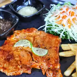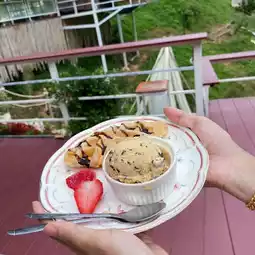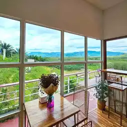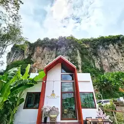 👉 The shop is located next to the Wat Tham Khao Khok temple and is also the cafe's parking lot. The way up is quite steep but not dangerous. Cars can drive up normally. It is recommended to park in the temple and walk down to the cafe, where you can also see the surrounding atmosphere (recommended in the evening). It will be a bit hot during the day. The shop is not very big. There are tables outside for eating and taking pictures. Inside the shop, there is air conditioning. The drinks are not expensive, averaging only 50 baht. The food tastes okay, but there are not many menus to choose from.