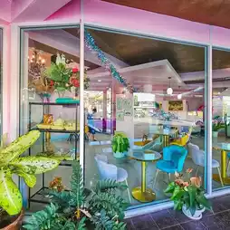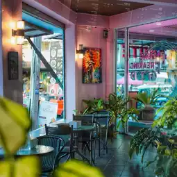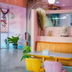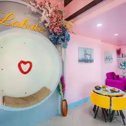 🍕 Labute is a luxury restaurant & cafe located opposite the Shrine Market. Decorated in a cute pink tone 🍨, it offers a variety of photo spots for endless photo opportunities. There are indoor and outdoor seating areas to enjoy the city vibe of Surat Thani and the Shrine Market 🏯, showcasing the architecture of the Hainanese shrine in Ban Don. The restaurant offers a wide selection of dishes, from local Thai dishes to affordable Western dishes, starting at just 69 baht. They also offer homemade desserts. Don't miss out! Stop by and check in!