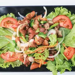 👉 The shop has both a pork BBQ zone and a resort that is being renovated to be more beautiful than before. There are a moderate number of menus to choose from. ⛰️ It can be considered another place that is close to nature. There are many beautiful photo spots. 📸 In addition to pork BBQ, there is also garlic fried rice (bacon), various spicy salads that are also delicious. And if there are cold drinks 🥘🍻, it's also great. 🍃