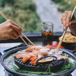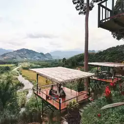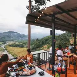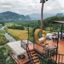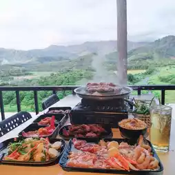🙋🏻 Take another trip to Na San with a pork BBQ dinner on the mountain. Let me tell you, the atmosphere is like being in the North. From the shop, you can see the mountain view contrasting with the stream flowing through. Let me tell you, it's awesome. 🌳