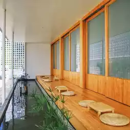 👉 The interior is decorated in a Japanese style, with multiple seating areas, both indoors and outdoors. What really stands out is the cafe's simple and approachable décor.