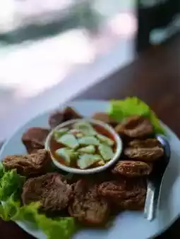 Southern food in Surat Thani that is considered to be spicy with the true taste of southern chicken must be this restaurant, Chom Bang, because this is a southern restaurant that serves fresh seafood of various types. The interior of the restaurant is designed and decorated in a modern loft style, but it goes well with the beautiful view of the surrounding nature.