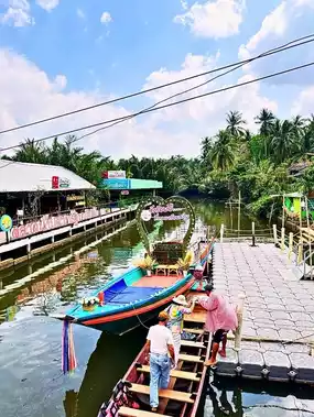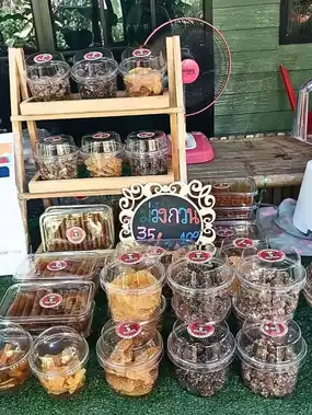 🍻 Talad Nam Pracharat is a floating market in a community called Bang Bai Mai that opens only on Sundays. It is a market of local wisdom. If you are coming, I recommend coming in the late morning. There will be a lot of things for sale. But if you come too late, the things may be sold out. The uncles and aunties here are very cute.