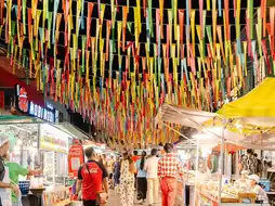It is an old market here. It focuses on selling food and food. There are many shops. Walk and taste it. It's fun.
