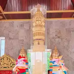 The "City Pillar" is carved from Chaiyaphruek wood, which is considered an auspicious wood, and is 108 inches high. The top of the pillar is carved into the shape of Avalokiteshvara Bodhisattva with 4 faces or 4 directions, which looks like the 4-faced Maha Brahma.