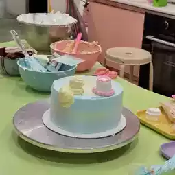 Today, we are going to a workshop with the shop. They are currently offering a free teaching program. Come quickly! It is also a great activity. Plus, it is super fun. When you finish, you can take the cake home to eat. Both children and adults can come here. 🧁🎂🥧👩🏼🍳