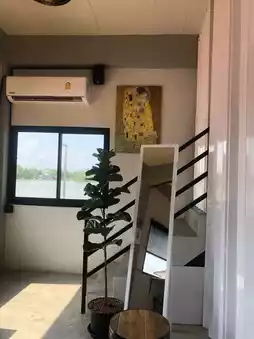 Kram Cafe' ☕ is a cafe with a nice atmosphere in Surat Thani Province. It is located on the banks of the Tapi River, opposite the old Wat Klang.  The shop has 3 floors in total. The first floor is a Japanese-style floor seating area by the river. The second floor is an air-conditioned room suitable for working. The third floor is a rooftop with a beautiful view of the city and the river.