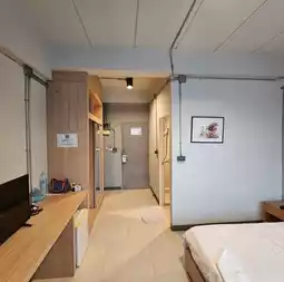 ðThe hotel is about 5 floors high. There are many rooms to choose from, both double and single beds. There is an elevator. The bed is soft and comfortable. The bathroom has a separate dry and wet zone. There is a TV and a water heater. Cheap and good, you must come here only.