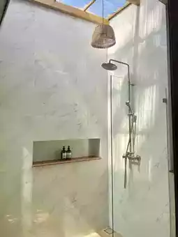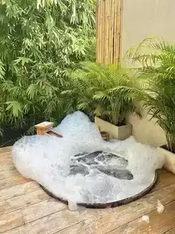 There is a bathtub with bubbles. The outdoor area is beautiful for taking pictures. It feels great. 🥂📸