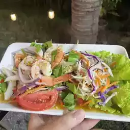 A riverside restaurant with a great atmosphere, this cafe and chill-out spot in Surat Thani offers a wide variety of food and drinks, with a camping-like atmosphere. The restaurant offers delicious food and drinks.