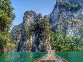 Take a boat trip to admire the natural beauty of Khao Sam Kloe at Cheow Lan Dam.