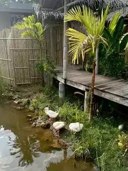 🍲 Restaurant: There's a restaurant inside called "Kin Dee Meesuk," a southern Thai restaurant with delicious food. At night, there's live music and a small bar for relaxing.