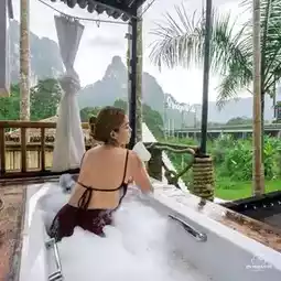 Hot tub in front of the room