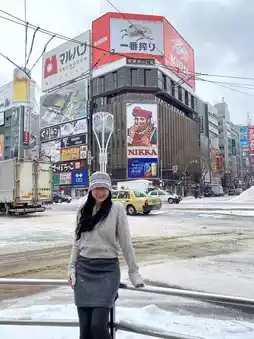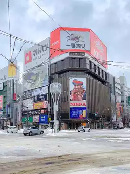 If you go to Sapporo Susukino, you must take a picture with the landmark of Susukino, Nika-san. This is the photo zone taken from the diagonal sidewalk of Nika-san📸🖤