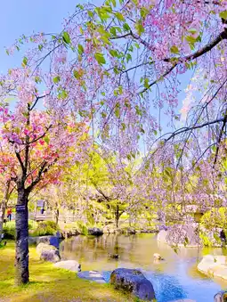 ☑︎Even after the Somei Yoshino cherry blossoms have fallen, you can still enjoy the late-blooming "Yaezakura" and "Weeping Cherry Blossoms". Highly recommended.