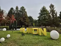 Autumn in Suwon is even more beautiful at Hyowon Park. Nestled around the Gyeonggi Arts Center, this park is a harmonious blend of nature and culture. Strolling along its pathways, you'll find golden ginkgo leaves and crimson foliage painting the ground with the colors of fall. 🍁☀️🌿