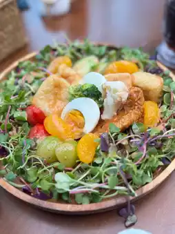The Gadogado salad was fresh and healthy with a lot of delicious peanut sauce, and the Nasi Goreng was spicy fried rice with a fried egg on top, properly capturing the local Balinese sensibility. The seafood oil pasta was satisfying with the harmony of fresh seafood and clean taste.😍