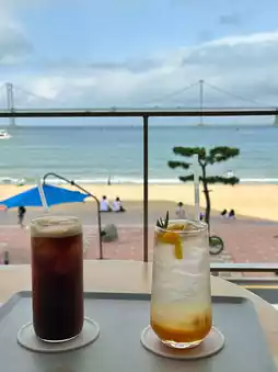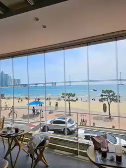 The view of Gwangandaegyo Bridge from the second floor is absolutely stunning and clear 💛. The drinks are delicious, and the cozy seating makes it a place you'd want to visit often 😊. Especially with the perfect view of Gwangandaegyo Bridge, the ocean view is breathtaking, and there are plenty of window seats, making it easy to secure a good spot 😋.