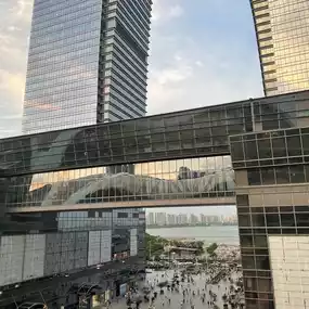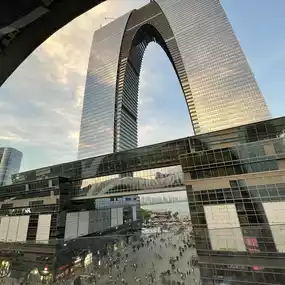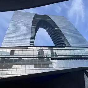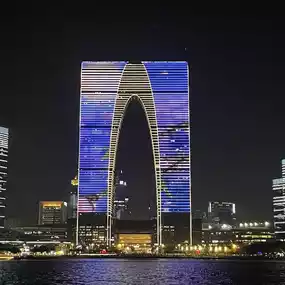 The infamous pants of Suzhou building~ Gate of the orient . This building is the second tallest in Suzhou and is located right at the central shopping center 🛍️ in Suzhou overlooking the JINJI River 🏞️.