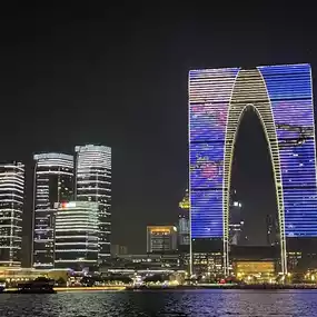 Lake view restaurant "Encounter with Jiangnan: The Finest Oriental Banquet" at the landmark Oriental Gate in Suzhou
