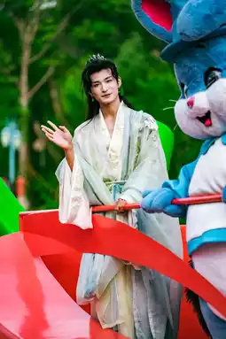 As soon as I stepped into the park, I was captivated by the handsome and dashing appearance of Xu Xian. He stood there, waving a folding fan, with an air of grace as if to say: 'I am the legendary Xu Xian, come and join me on adventures in the world of martial arts!' I couldn't help but laugh out loud, thinking that this Xu Xian was really into his role!