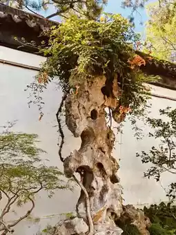 "Orchid Snow Hall": It is the main hall in the eastern part of the Humble Administrator's Garden. The name of the hall is taken from Li Bai's "Independence between heaven and earth, the breeze scatters orchid snow". Ancient pines and strange stones are used as the landscaping of the hall.