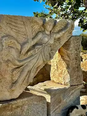 The ancient trees in the courtyard reach for the sky, their branches and leaves intertwined, casting a cool shade. A breeze rustles the leaves, as if telling the story of the ancient temple.