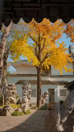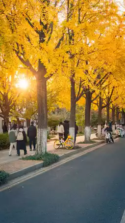 • Highlights: The south side of the 1.5 km long Daoqian Street is lined with ginkgo trees. The golden ginkgo leaves hang on the treetops like strings of golden wind chimes. The shadows of the trees, the small bridges and flowing water under the trees, the pink walls and black tiles on the roadside, and the ancient-style bus stops form a unique Suzhou scenery.