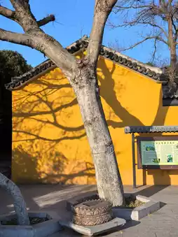 Yonghui Zen Temple is located on the top of Shibi Mountain. It is said that in the third year of the Longqing period of the Ming dynasty (1569), Master Hanshan came here to build a hut, and it gradually became a famous scenic spot. Today, there is still a huge stone on the top of the mountain, with the words "Hanshan Platform" engraved on it, because there was a place where Master Hanshan meditated and practiced beside the huge stone. This is a small mountain range protruding into Taihu Lake, with a winding shape, extending into Taihu Lake, like an island on the water. There is a depression on the east side of the mountain top, surrounded by stone walls like a knife, more than ten meters high. Yonghui Zen Temple is built in the "stone wall nest". The inscriptions of celebrities add a strong historical and cultural flavor to the scenic spot. The plaque of "Daxiong Hall" signed by Zhao Puchu (Vice Chairman of the National Committee of the Chinese People's Political Consultative Conference) is hung high in the temple. At the back door of Yonghui Zen Temple, there is an 800-year-old photinia tree, rooted in the cracks of the stone wall, with half of its roots in the cracks and half exposed outside. Because the tree trunk and roots are clearly presented to tourists, and they are close to the steep stone wall, like a dragon lying down, like a giant python circling, with an advantage, it stretches straight to the top of the cliff, showing a piece of green. As soon as you enter the temple, two ginkgo trees one zhang apart are very eye-catching. These are two ginkgo trees from the Ming dynasty. The one on the right is female, and the one on the left is male. Two people hug each other. The "marriage" of this pair of male and female ginkgo trees has lasted for more than 500 years, and they should have many descendants.